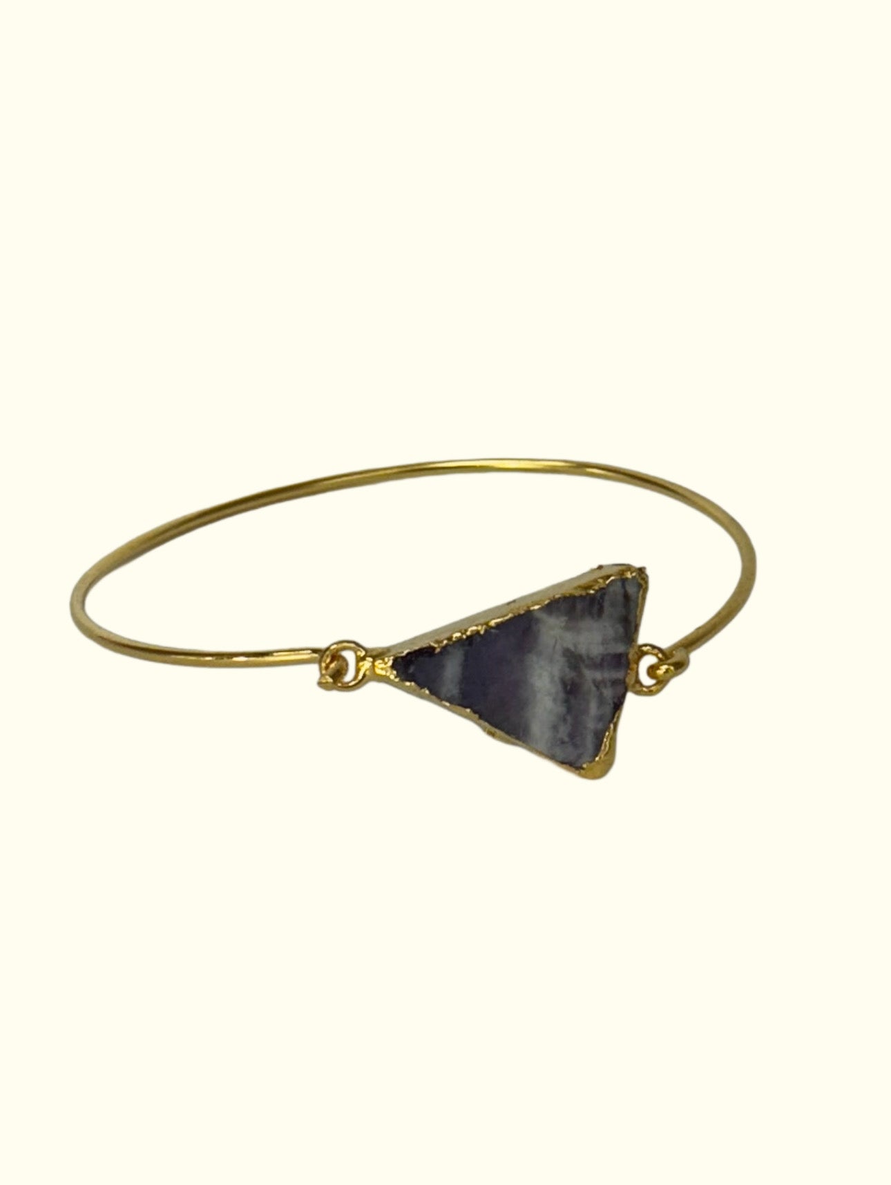 Graphique, minimaliste et captivant, le bracelet “Bleu Éclipse” incarne l’élégance moderne. Sa pierre triangulaire en sodalite naturelle révèle des nuances de bleu nuit et de gris nuageux, symboles d’intuition et de paix intérieure. Montée sur un jonc doré délicat, cette pièce apportera une touche chic et céleste à toutes vos tenues.
