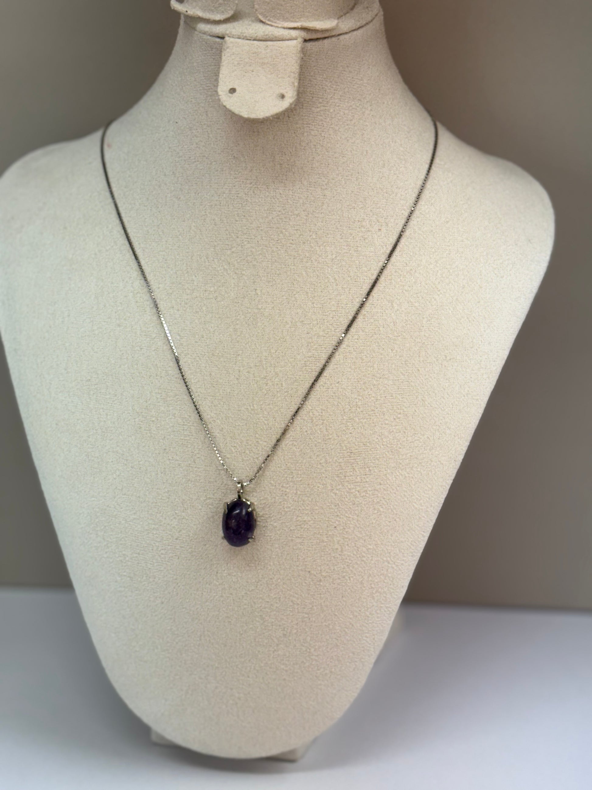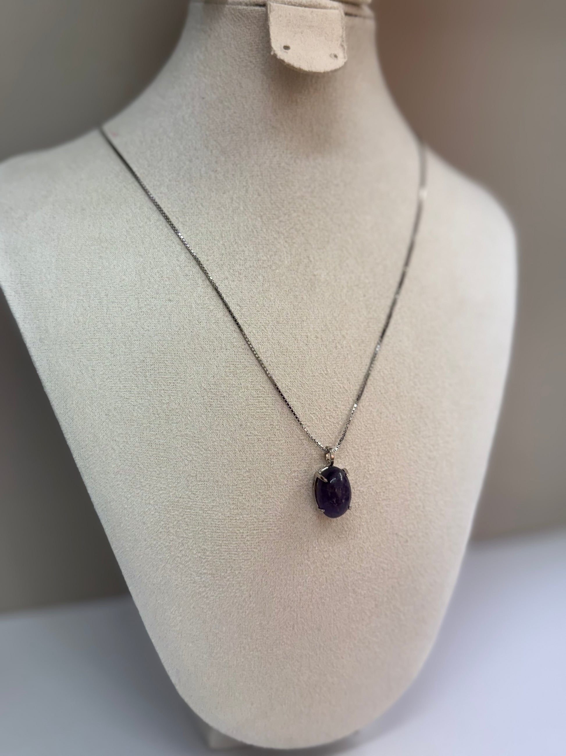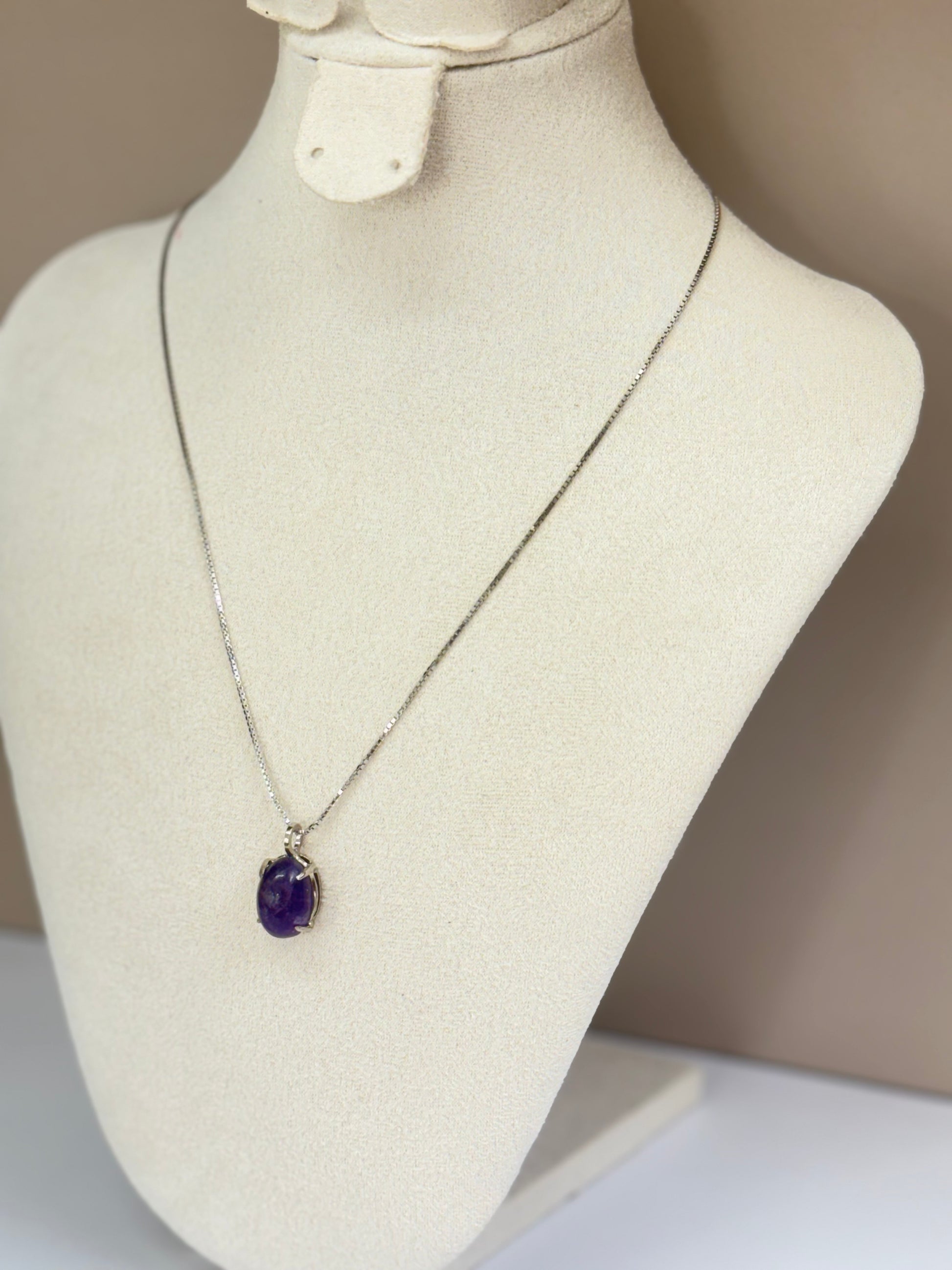 Clarté Nocturne dévoile une améthyste d’un violet profond, mise en valeur par une monture sobre et élégante en argent 925. Sa forme ovale et sa teinte mystérieuse rappellent un ciel étoilé au cœur de la nuit. Ce collier, à la fois raffiné et expressif, ajoutera une touche de caractère mystique à toutes vos tenues.