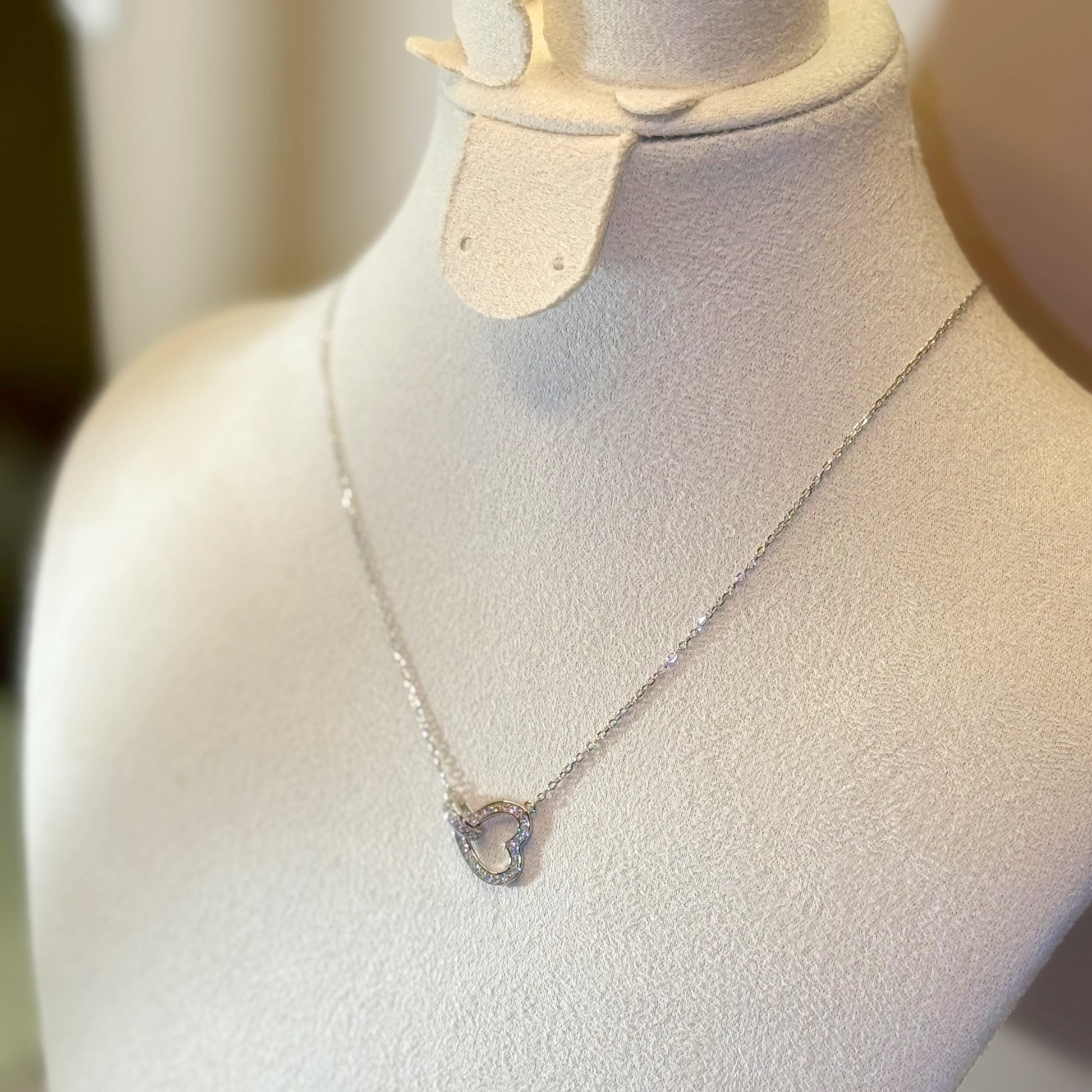 Fin et délicat, le collier Cœur d’Argent incarne l’amour dans sa forme la plus pure. Son pendentif en forme de cœur ajouré, serti de cristaux aux reflets arc-en-ciel, scintille avec élégance à chaque mouvement. Une pièce romantique et moderne, parfaite pour offrir ou se faire plaisir.