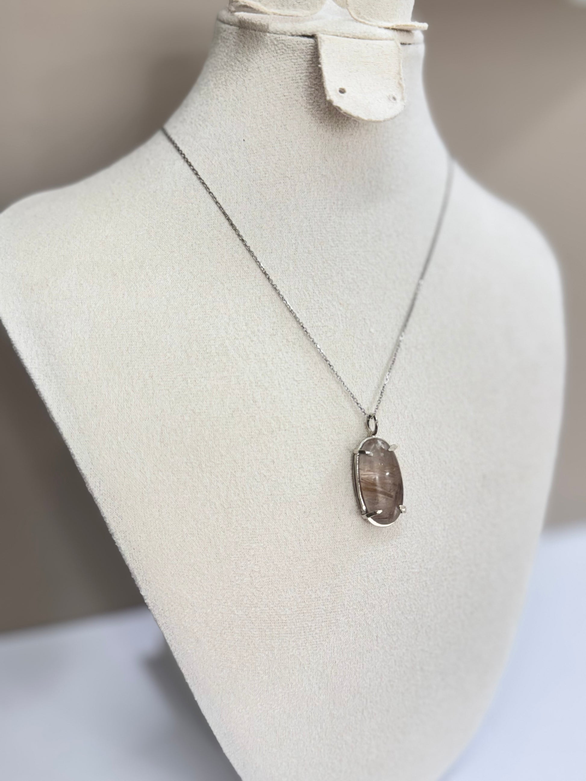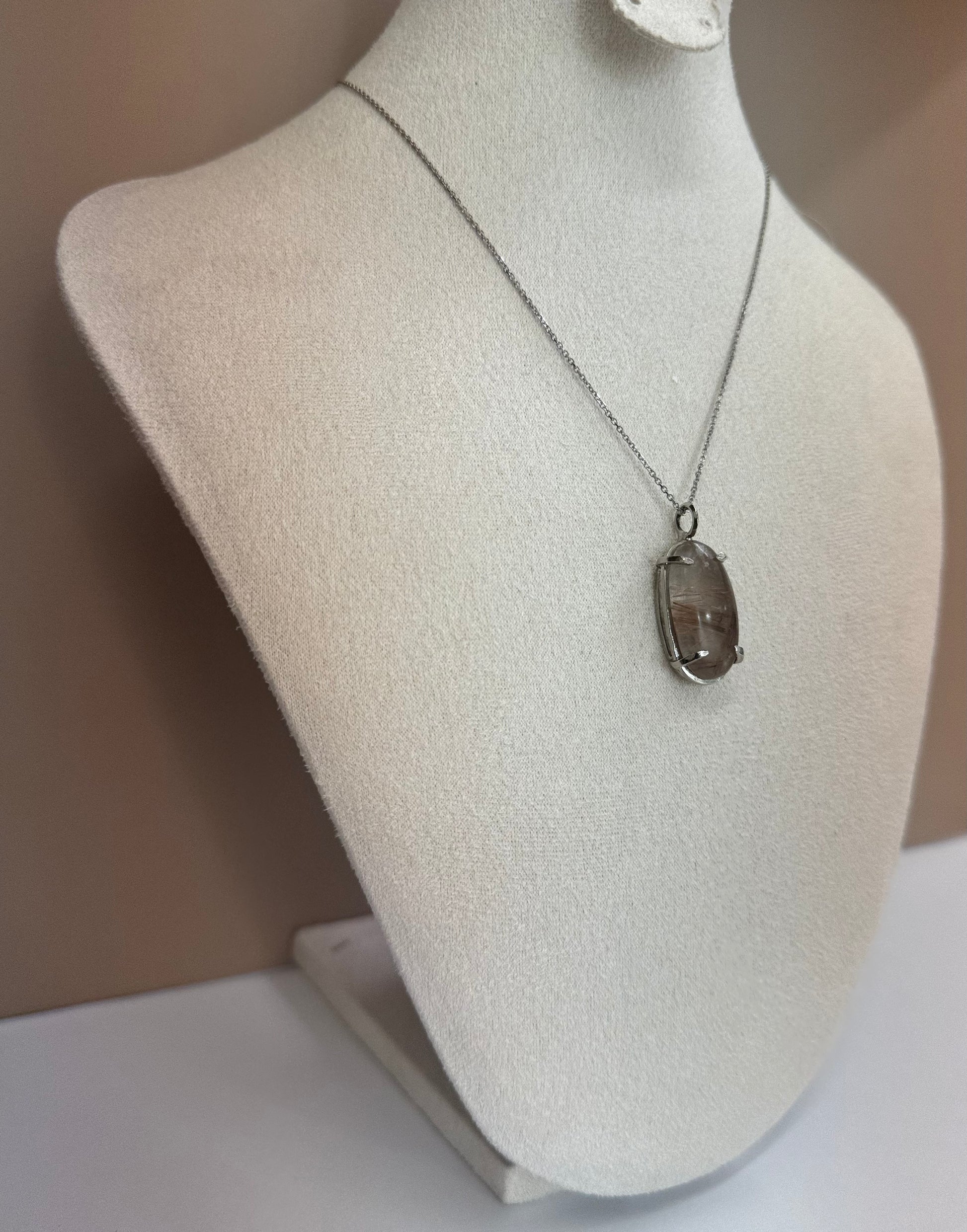Lumière Intérieure est un bijou rare, mettant à l’honneur un magnifique quartz rutile, reconnu pour ses inclusions dorées naturelles uniques. Chaque pierre est différente, traversée de fils lumineux semblables à des éclairs figés dans le cristal. Montée sur une chaîne fine en argent 925, cette création incarne l’équilibre parfait entre mystère et éclat.