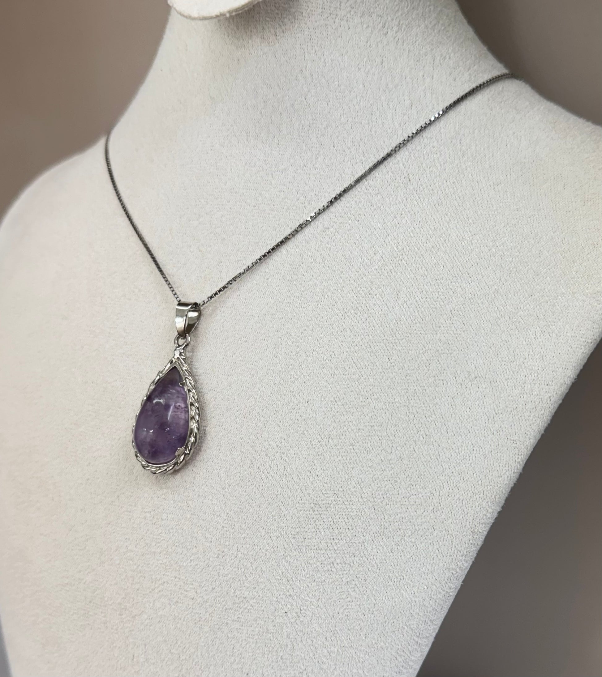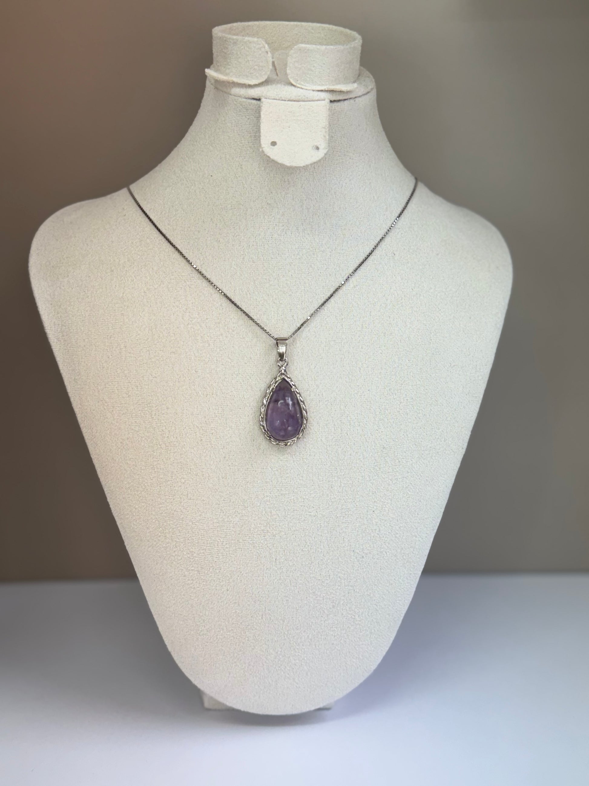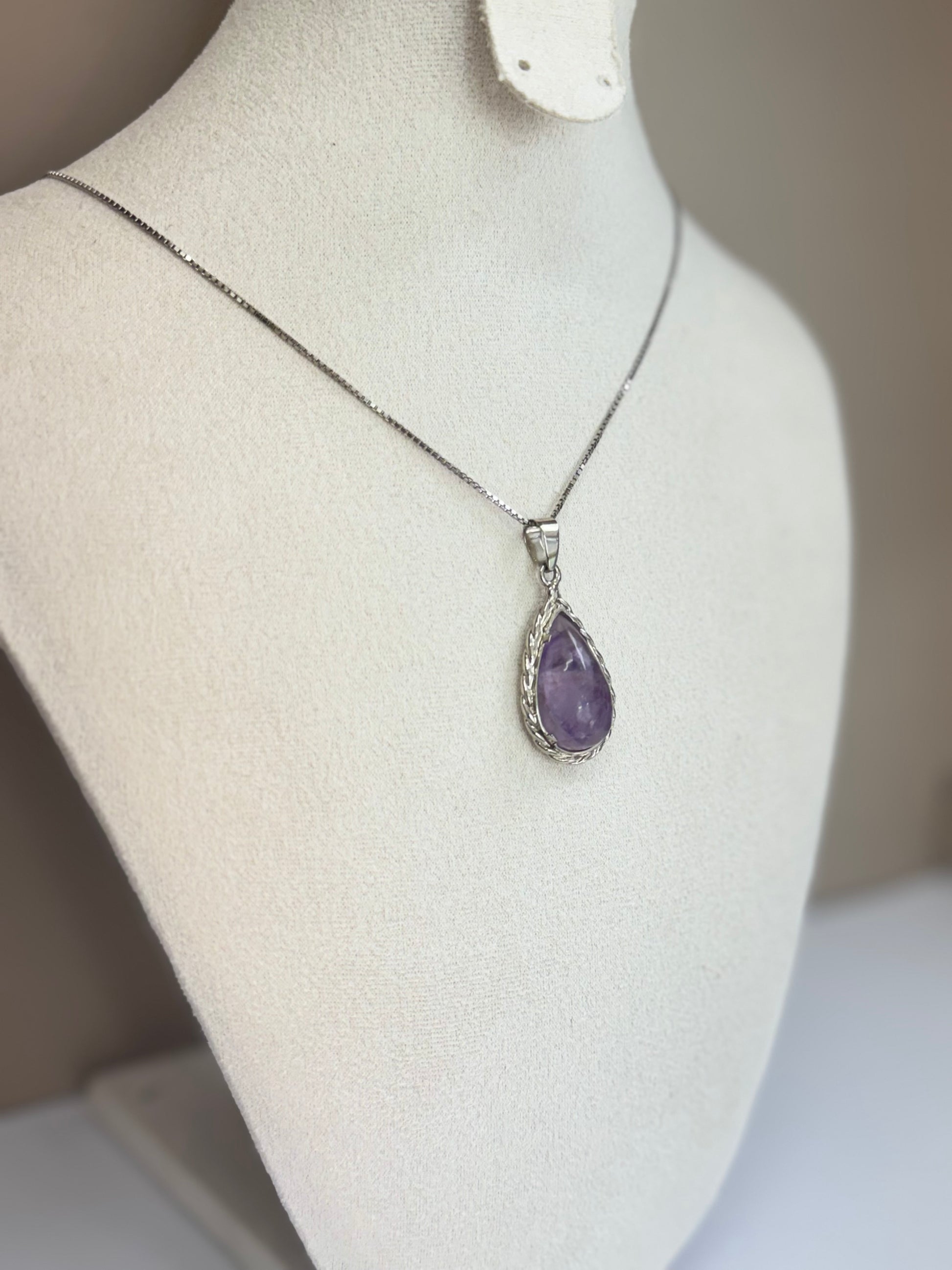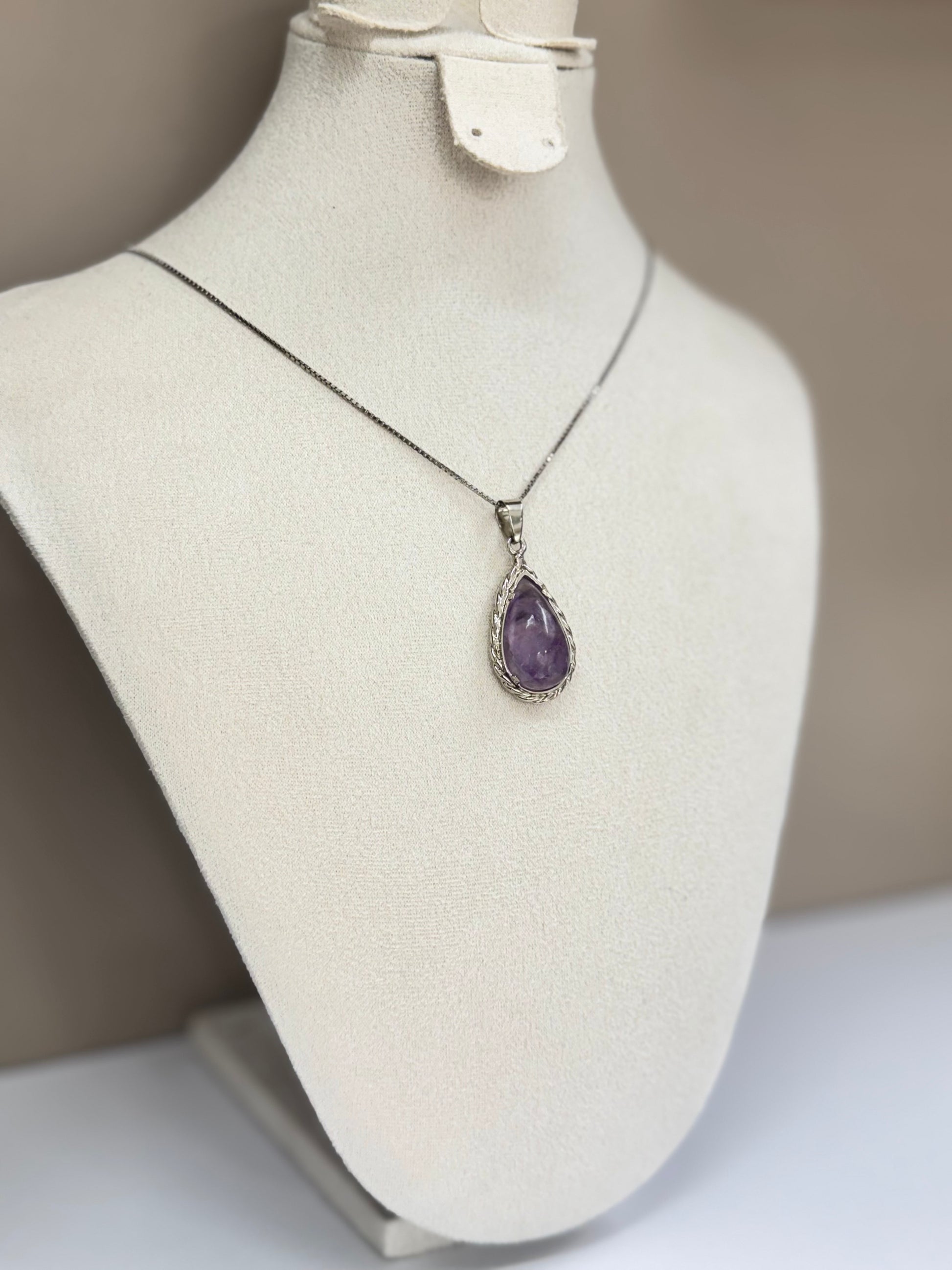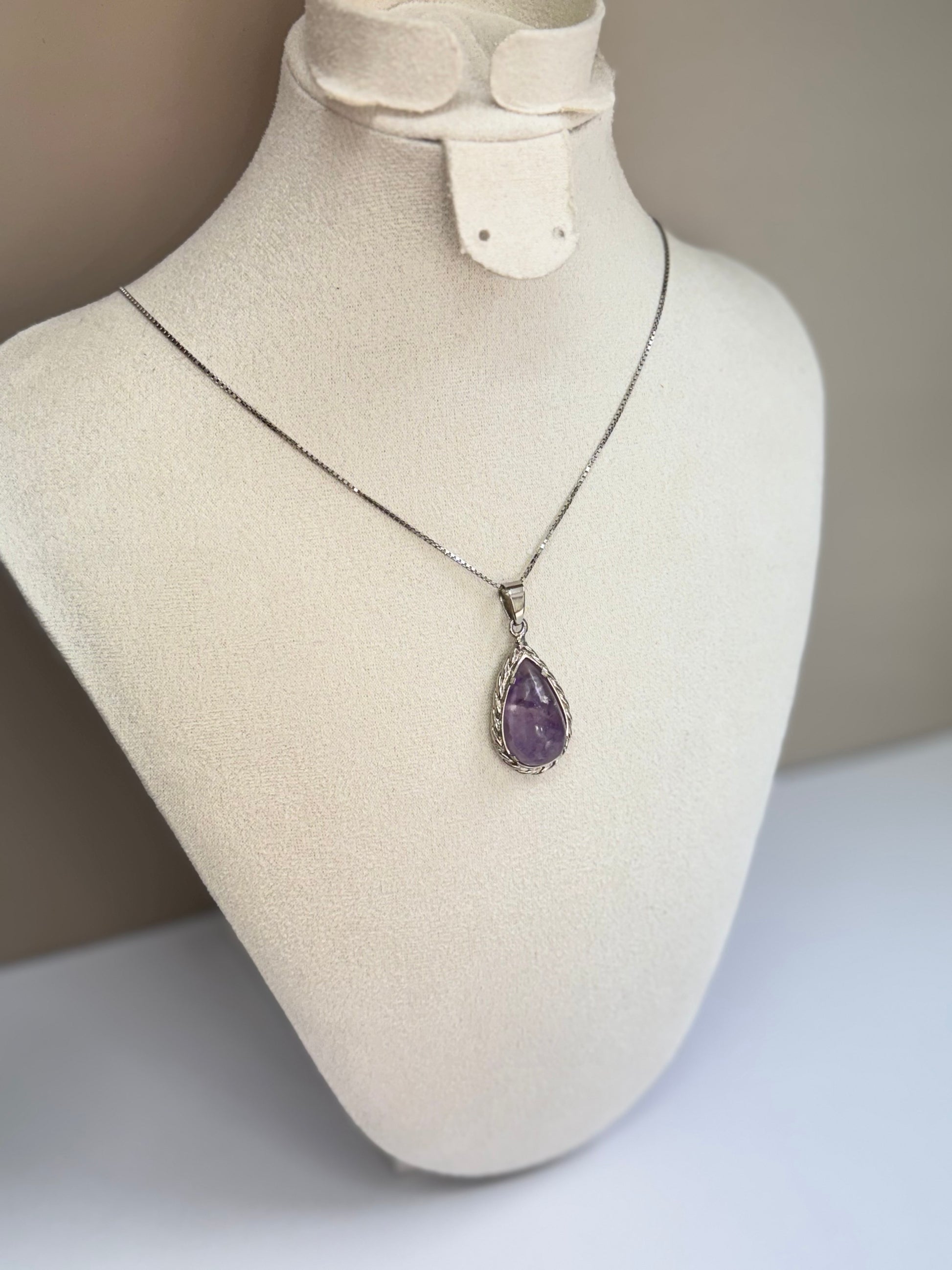 Goutte d’Améthyste est un collier raffiné mettant en valeur une pierre d’améthyste taillée en goutte, suspendue avec grâce à une chaîne en argent 925. Sa teinte violette profonde et mystérieuse capte la lumière avec élégance, apportant une touche de sérénité et de sophistication à votre tenue. Ce bijou incarne l’alliance parfaite entre minimalisme et poésie.