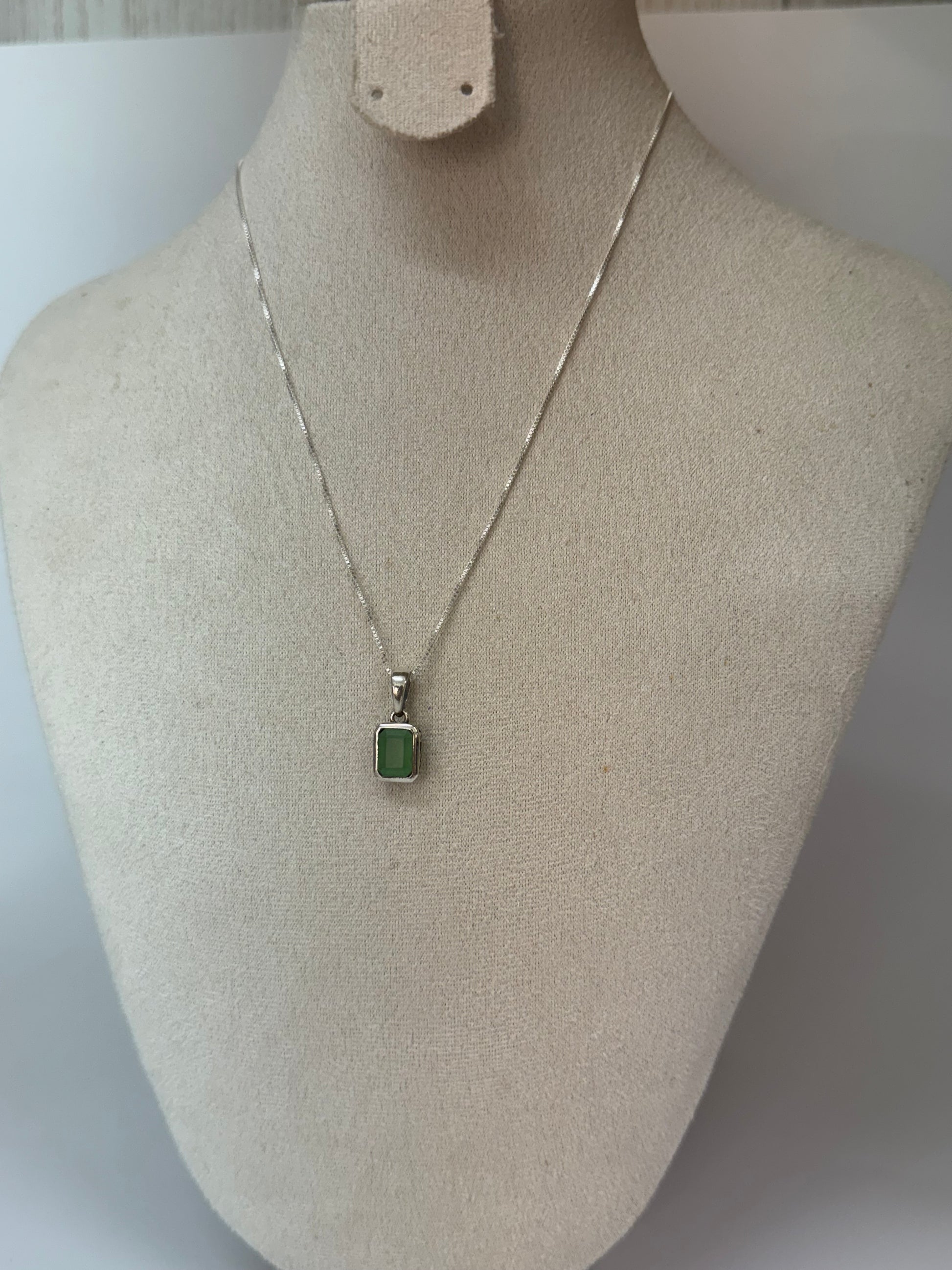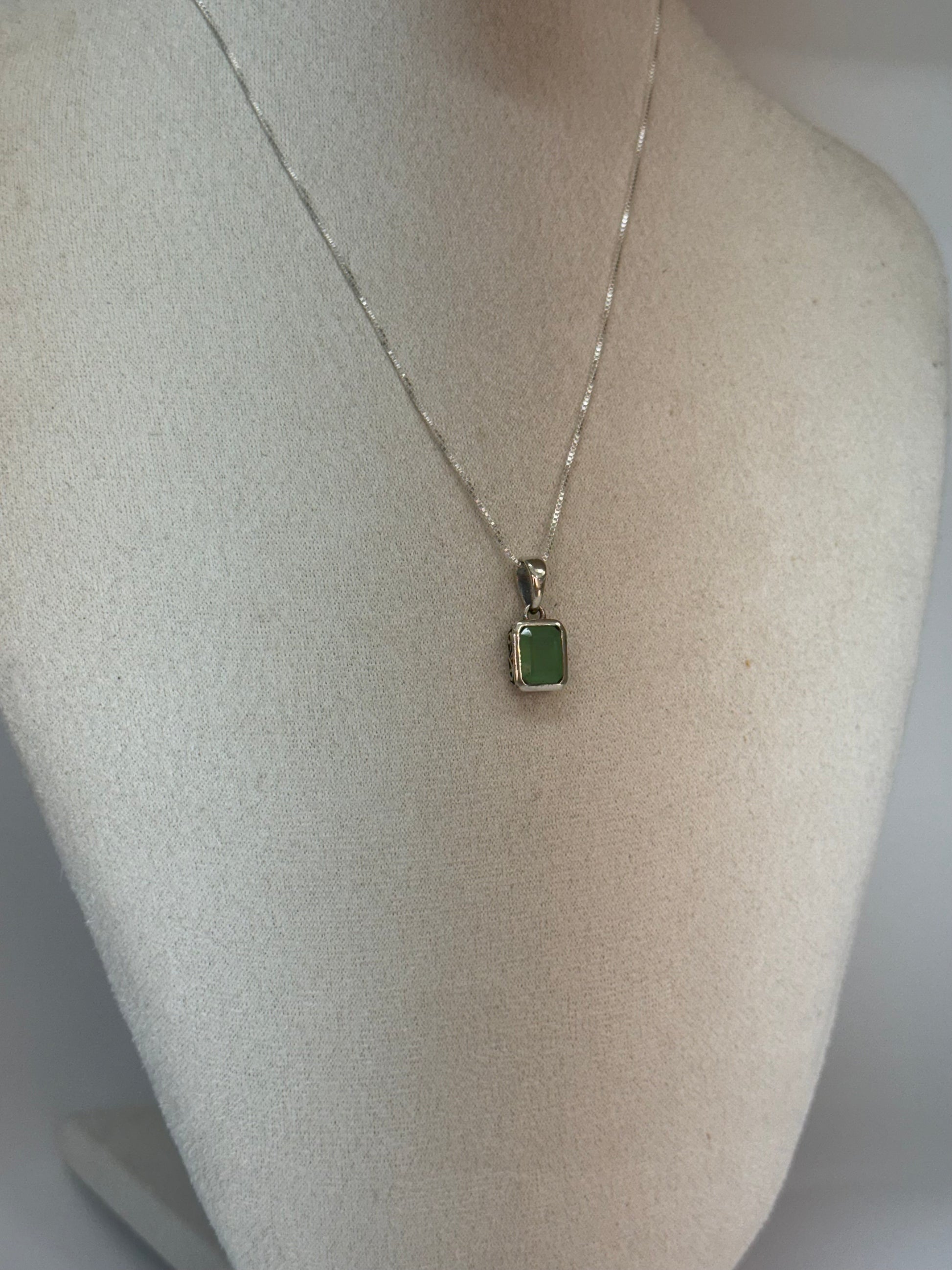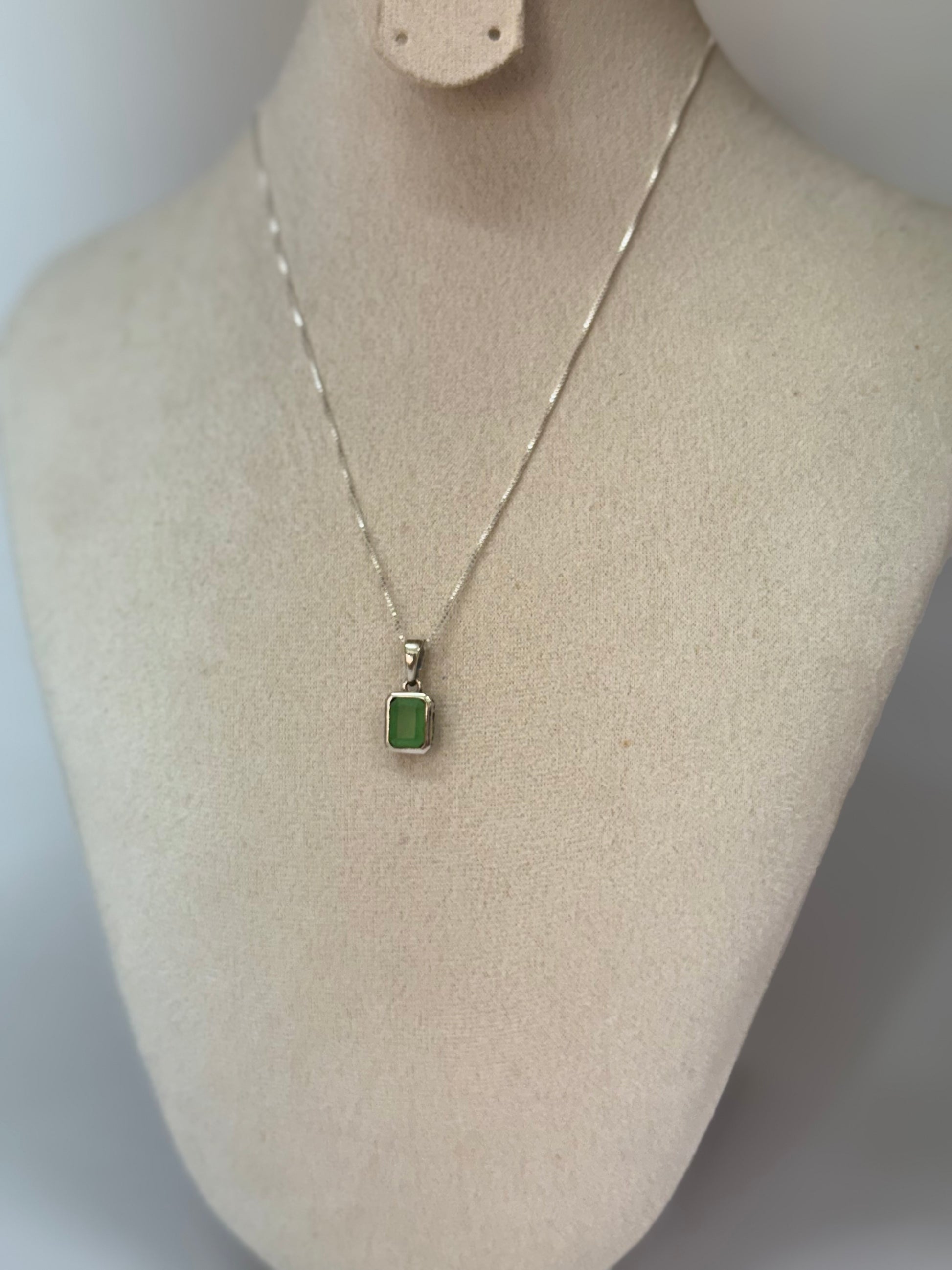 Ce pendentif rectangulaire en jade vert naturel incarne l’élégance apaisante. Symbole ancestral de sagesse et de prospérité, le jade est réputé pour équilibrer les émotions et attirer la chance. Son vert profond et pur est mis en valeur par un sertissage argenté aux lignes épurées.