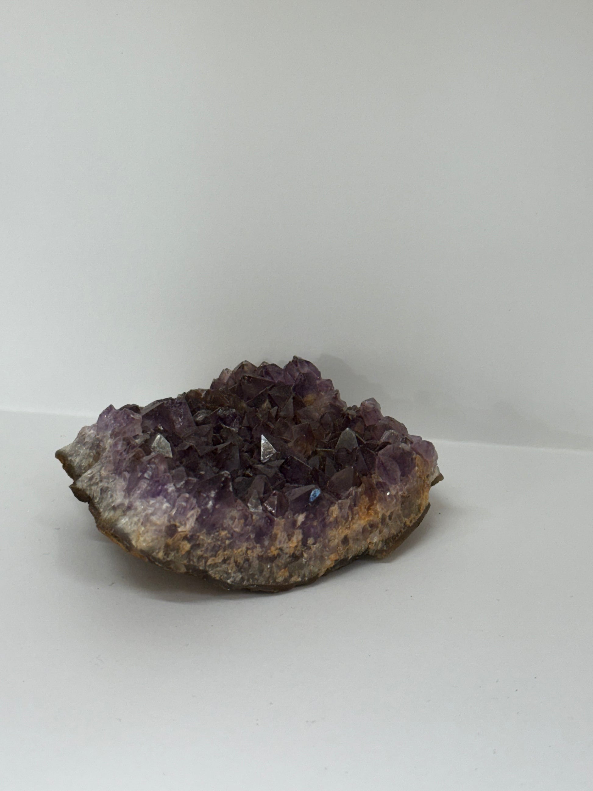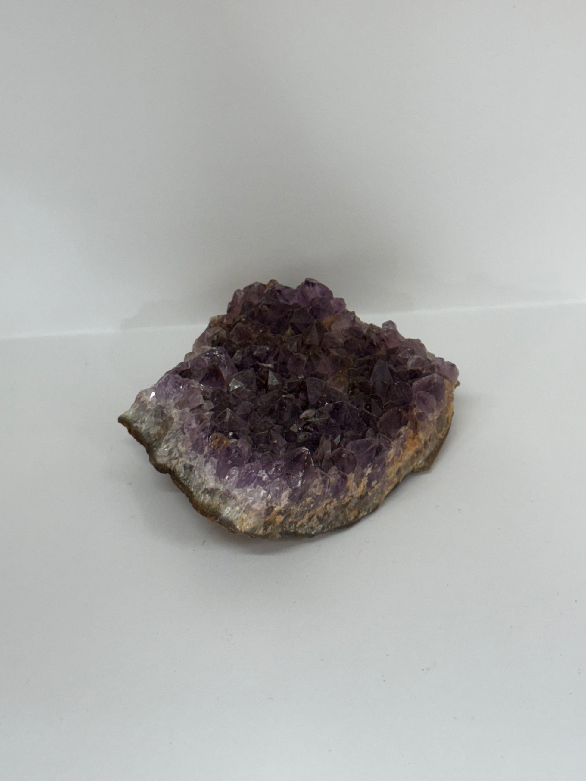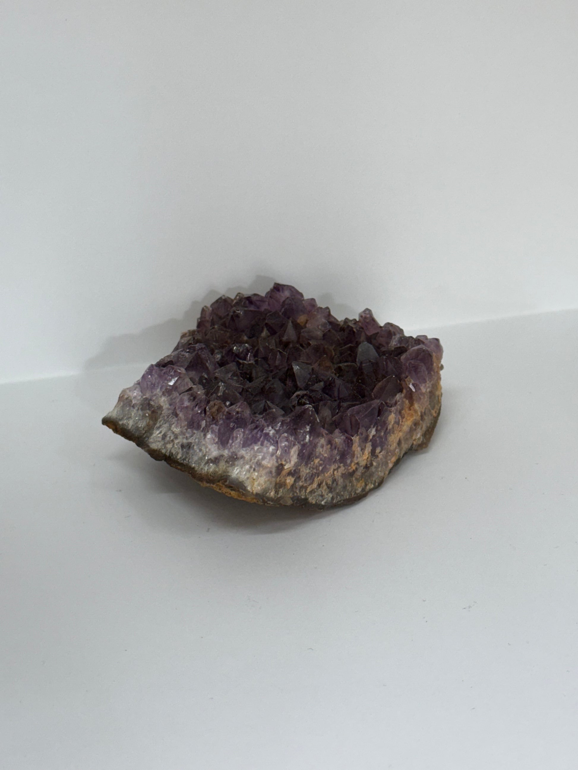 Cette améthyste brute se distingue par ses cristaux violets naturels formés en géode, avec une base rocheuse qui met en valeur la pureté de ses pointes scintillantes. Chaque pièce est unique et apportera une touche minérale authentique à votre intérieur ou à votre pratique énergétique.