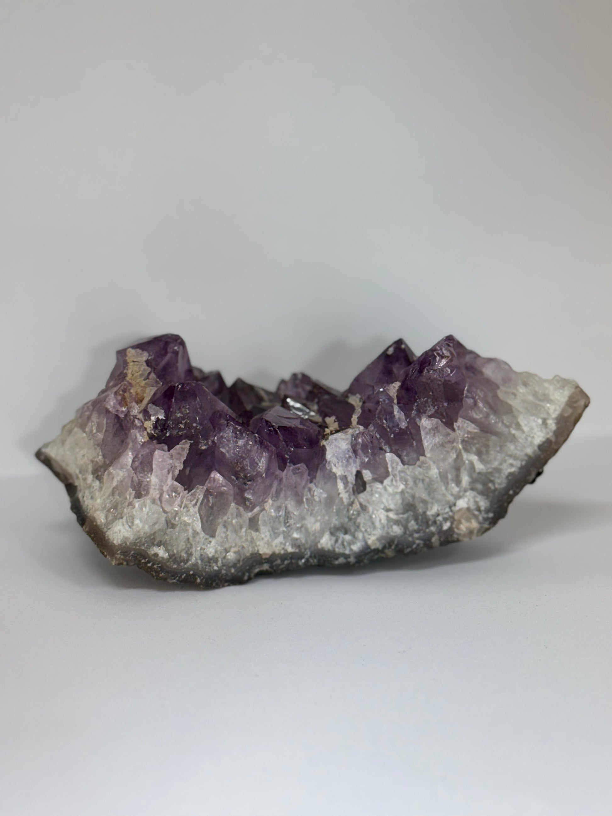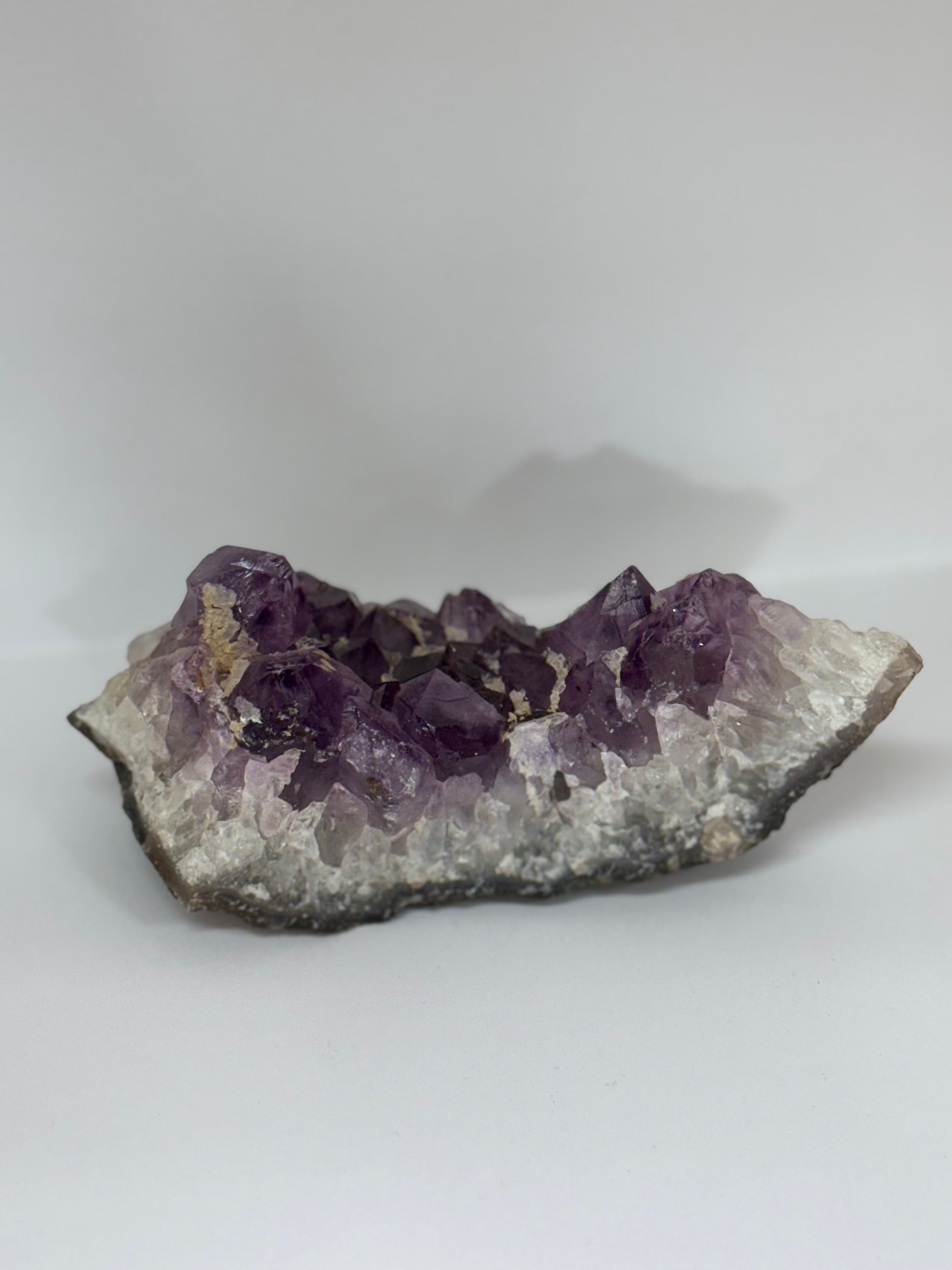 Cette améthyste brute se distingue par ses cristaux violets naturels formés en géode, avec une base rocheuse qui met en valeur la pureté de ses pointes scintillantes. Chaque pièce est unique et apportera une touche minérale authentique à votre intérieur ou à votre pratique énergétique.