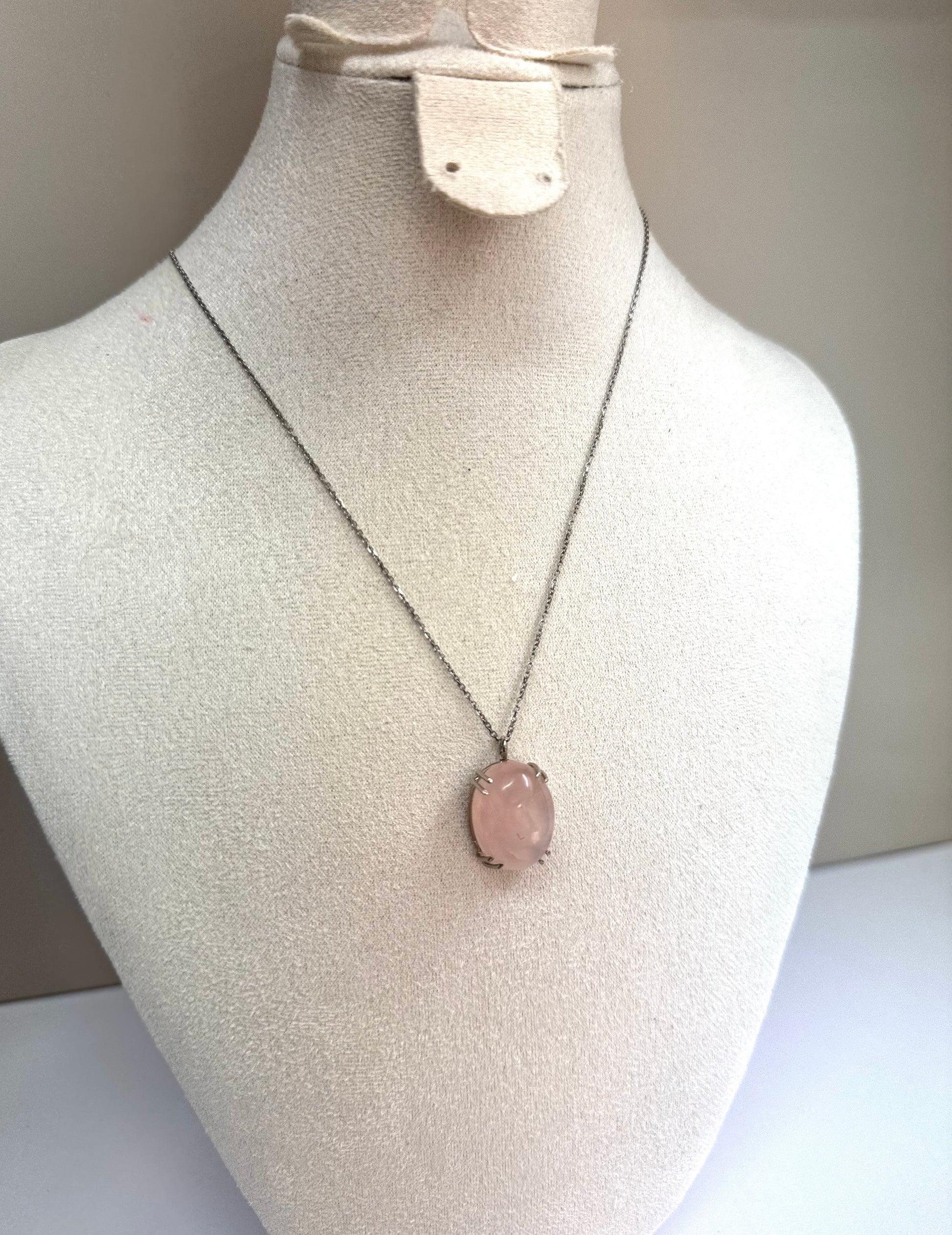 Rose Éveil dévoile un quartz rose délicat aux reflets tendres et laiteux, poli en une forme ovale douce et élégamment serti sur une monture en argent 925. Sa couleur pastel illumine le cou avec subtilité, ajoutant une touche de romantisme et de sérénité à votre allure.